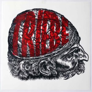 Durch die Kombination von präzisem Linoldruck und kräftiger Farbe entsteht eine eindringliche, fast ikonische Bildsprache. „Ares“ ist eine Studie über das Denken im Ausnahmezustand – über den Moment, in dem der Geist selbst zur Waffe wird.